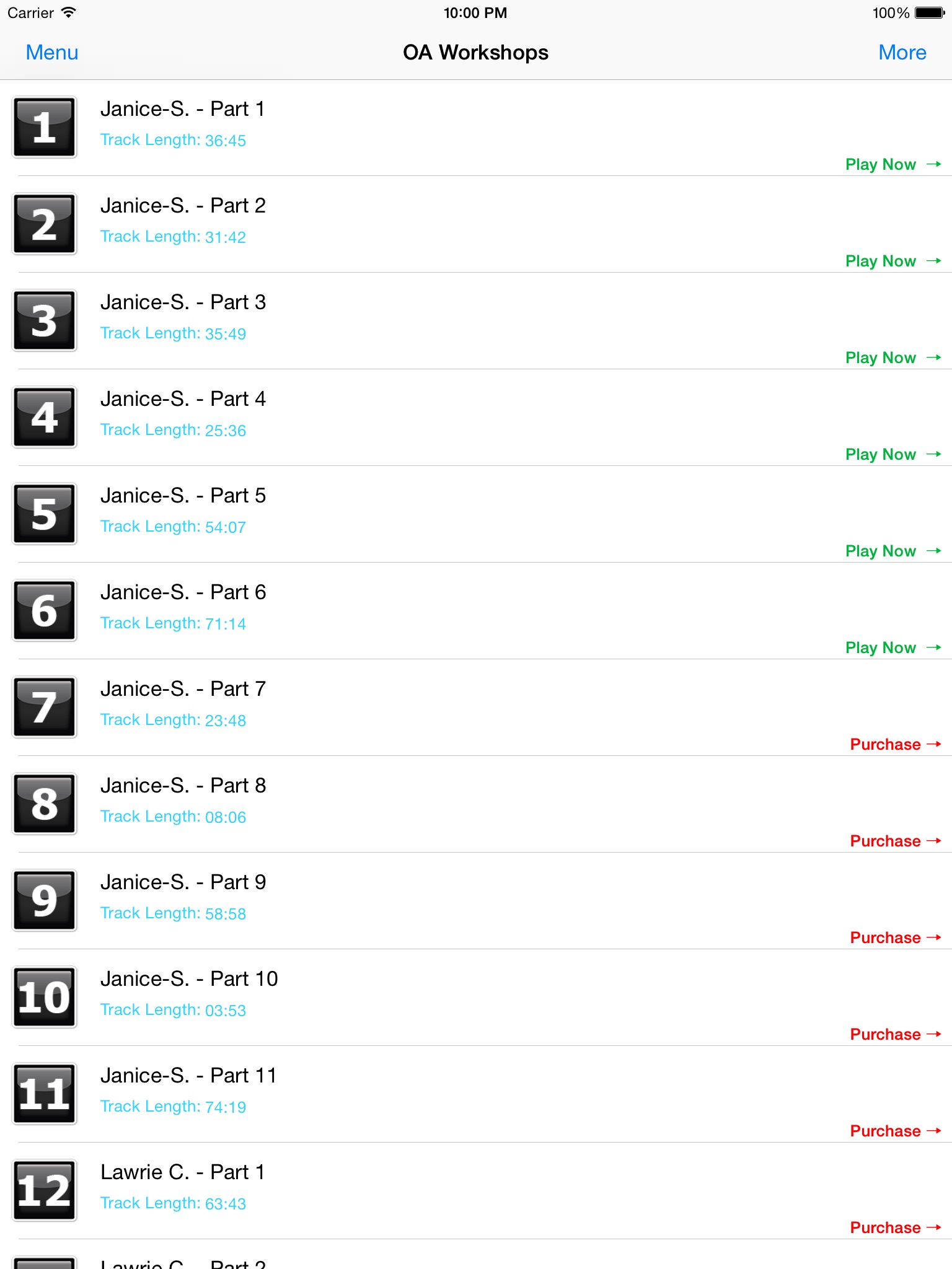 6 audio tracks (3 of each workshop) are included free of cost and you can upgrade to the premium version of the App via in-app billing.