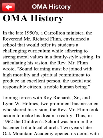 Welcome to Oak Mountain Academys smartphone app. We hope you will download and enjoy the use of the free app.