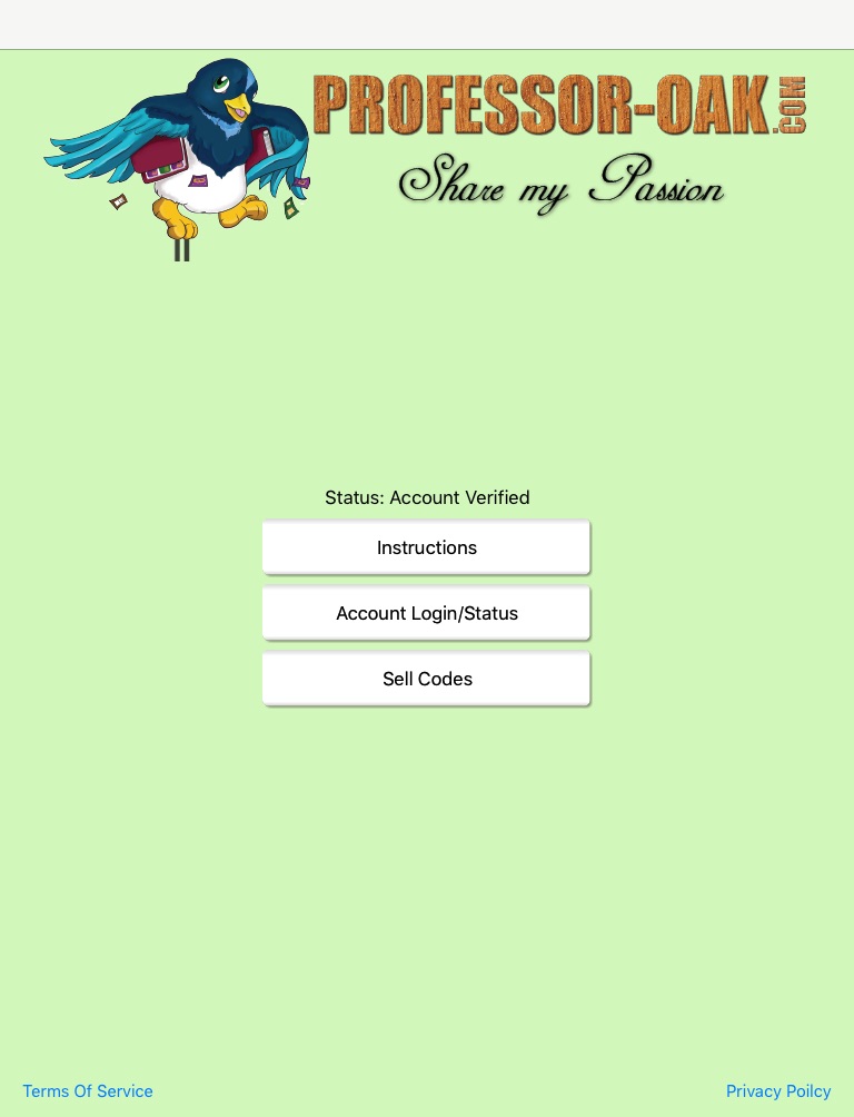The Oak Scanner application is a barcode scanner for scanning your unused Pokemon Trading Card Online Code cards directly into Professor-Oak.com for trade credits, store credit or PayPal payments. You can create an account with the App, but will only be able to scan codes for Trade Credit or Store Credit until you update your account on the Professor-Oak.com web site.