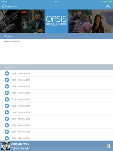 La nueva propuesta de Radio Oasis ofrece una frecuencia inspiradora única en programación y mood musical, orientada a quienes buscan disfrutar de la vida. En la 102.1 hombres y mujeres de 35 a 59 años de edad encontrarán siempre un buen tema, no sólo musical -con un catálogo seleccionado a mano de la mejor música de los últimos 40 años- si no también editorial, con todos los contenidos que están en sintonía con sus intereses y pasiones, con su Oasis del buen vivir: actualidad, cine, teatro, literatura, arte, viajes, gastronomía, tendencias y calidad de vida. Es Oasis Hoy.