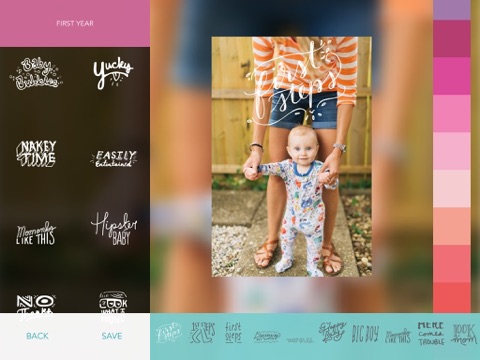 HOW IT WORKS: Pick a pregnancy or baby photo; crop it; select from among hundreds of illustrations; choose the size, color, and position of the artwork; then save and share. Done.