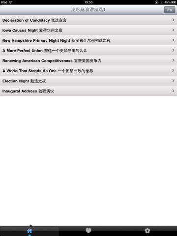 奥巴马演讲精选1,选用了奥巴马竞选总统时的8个著名演讲,总共时长约200多分钟演讲,让你体验奥巴马演讲现场的激情和精彩的演讲词,“同步字幕”“定位点读”让你更容易学习名人演讲,同时提高你的英语听读能力。