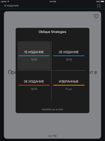 Oblique Strategies is an application that contains 3 of the most famous editions of these cards, with authors translations of the WOOPSS.com team.
