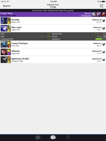 Once the game has started, enter the name and region of one of the players in the match and tap search.