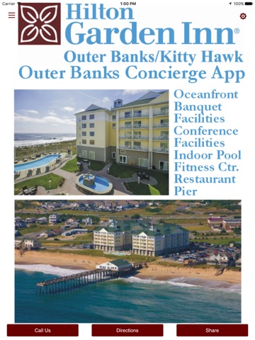 The Hilton Garden Inn in Kitty Hawk welcomes you to the Outer Banks. Download our free concierge app for extensive area information such as restaurants, shopping, tide charts, and a lot more. Our new app allows you to book your next stay and even inquire about conference and wedding planning. We hope you find our app useful for your next Outer Banks Vacation and we look forward to your visit with the Hilton Garden Inn Outer Banks.