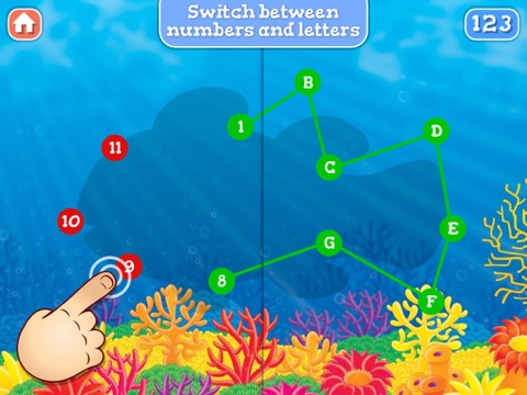 As soon as your kid tapped on all the dots shown, one of the cute sea animals appears - an instant reward and an incentive to go on playing!