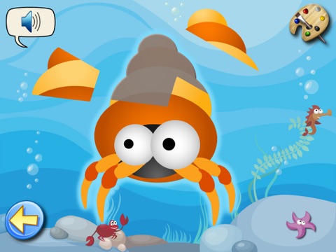 The child will have also fun discovering all the interactive objects of the background and can hear all the sounds of the sea and its inhabitants.