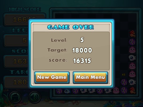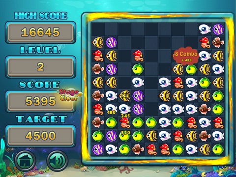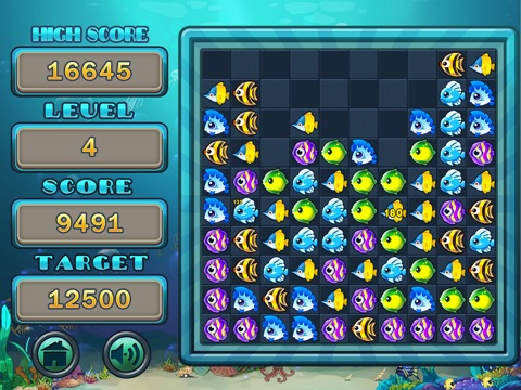 Click at least 3 same fishes or benthon in all directions to eliminate them and gain higher score to complete the TARGET score.