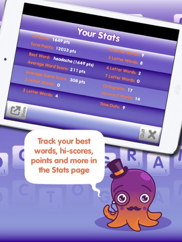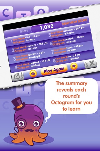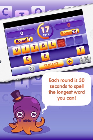 In case all that wasnt enough for you greedy humans Ive been a busy bee and created a whole new Time Attack mode for you Octogramming pleasure. You have 90 seconds to come up with as many words as possible, the more you can make the higher your score will be.
