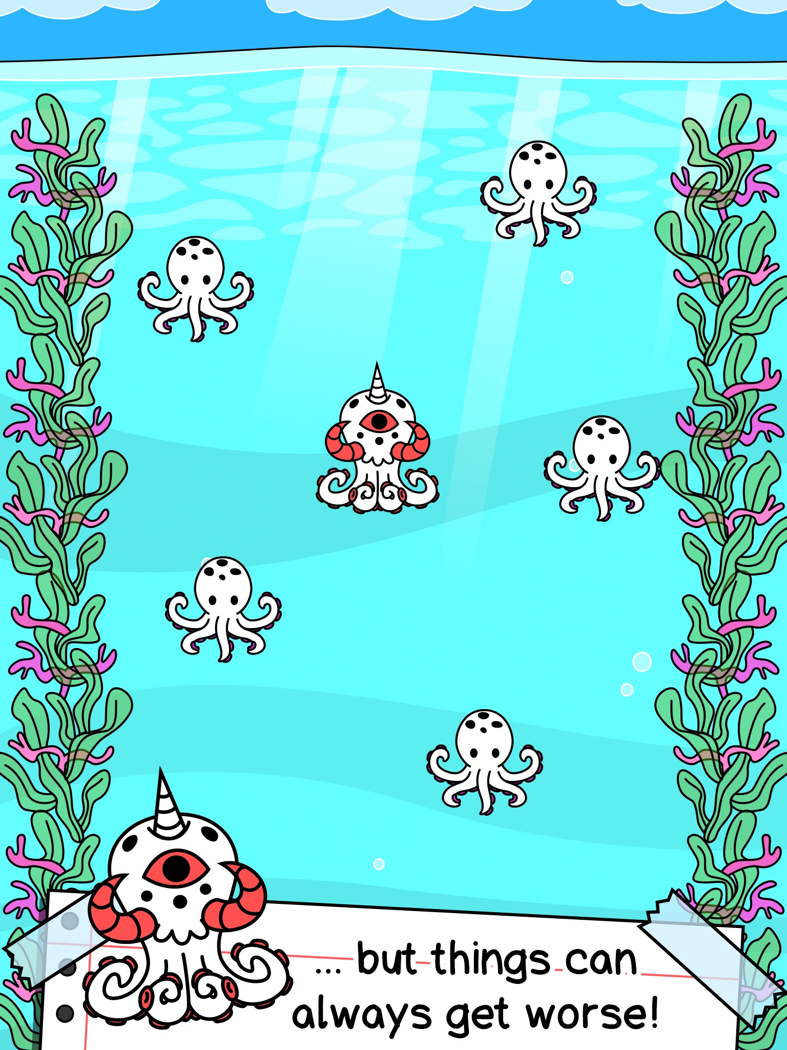Ce jeu est amusant même si il atteint rapidement sa limite il fait passer le temps. Par contre ça fait deux fois que je rachète tous les accessoires pour mes pieuvres. Ça me marque que jen ai deux disponibles mais je ne peux pas les mettre sans en repayer un et ça me soule parce quil faut payer en diamant. Je ne rachèterai pas de diamant pour ça et je trouve que ce nest pas normal
