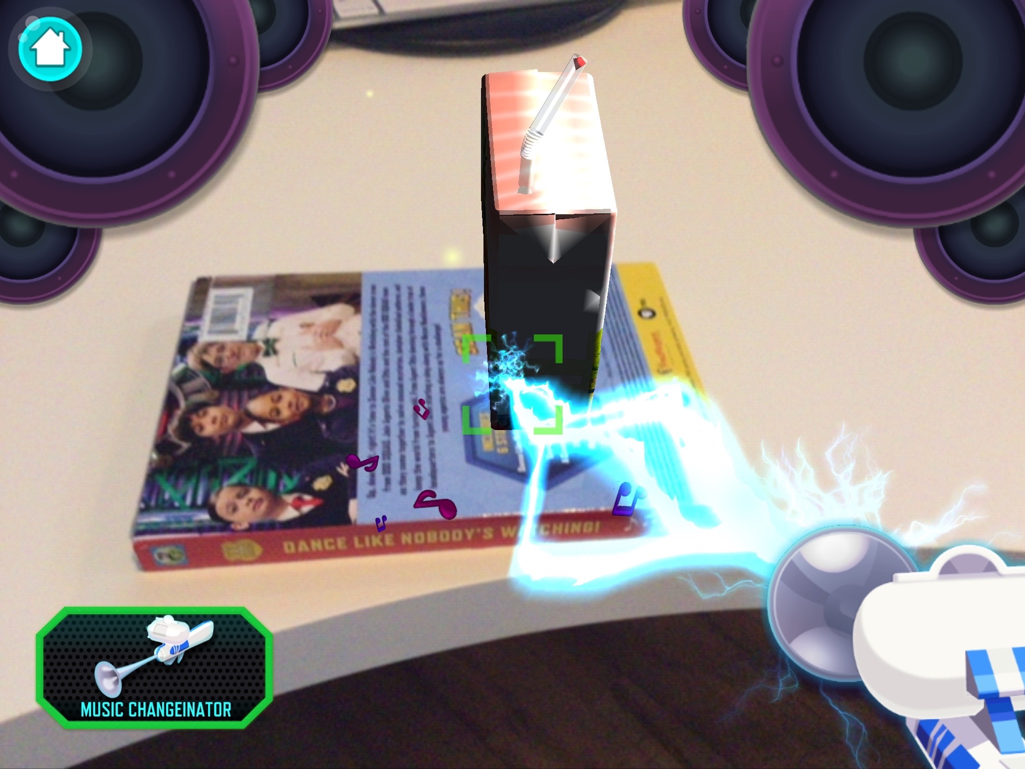 Just aim the camera on your app-enabled device at the back of your specially marked Odd Squad DVD case.