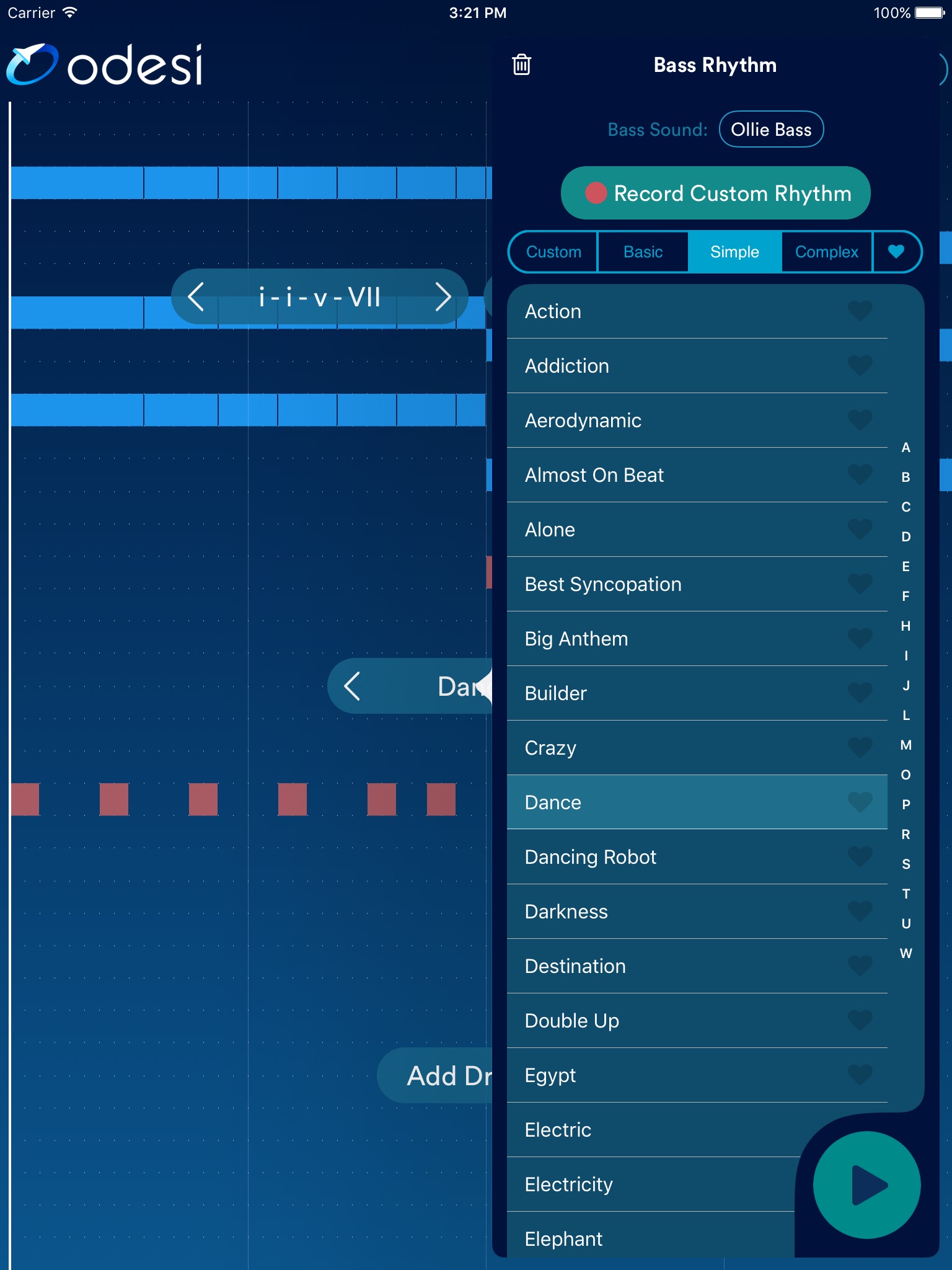 Odesi Chords is a sonic sketch pad for making great 4-bar compositions. Explore different rhythms and create the perfect chord progressions, basslines, and drum beats. As quick as a flash, lay down the foundation for your next big hit. When youre done with your session, your chords, basslines and drums will be 100% finished. Jam out to your new track with a live instrument, create vocal lines and sing or rap along. Export to the desktop version of Odesi, or any of your other favorite music production software. Odesi Chords, tap into your musical genius!