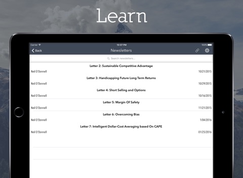 Learn financial tips and tricks from one of the greatest young minds of this century! Neil ODonnells popular finance newsletter comes right to your pocket with his very own app. Read the newsletter, interact with investment highlights and materials, and learn new tips and tricks for your portfolio - all for free!