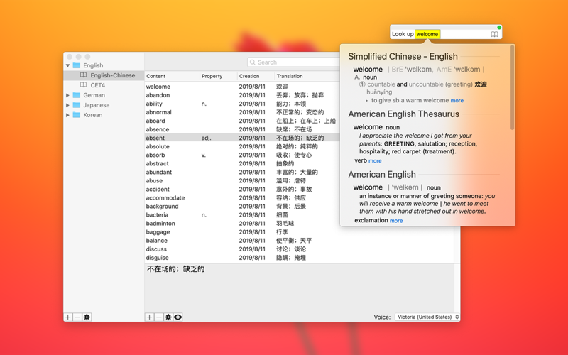 - Wtih convenient and efficient operations, you can simply add / edit / look up word in the mini main window. * Please see the last screenshot to learn how to use it quickly.