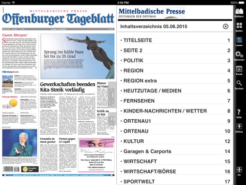Das Offenburger Tageblatt ist die Hauptlokalausgabe der Mittelbadischen Presse. Es bietet täglich hautnahe Informationen, gut recherchierte Hintergründe, beste Unterhaltung und Tipps zum täglichen Einkauf. Mit spritzigen Serien, pointierten Kommentaren sowie Telefonaktionen und Sonderbeilagen findet hier der Leser eine auf seine Bedürfnisse zugeschnittene News-Auswahl.