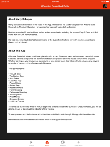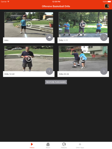 The drills are divided into three 10 minute segments and are available for purchase. Once purchased, you will be able to play the video youve purchased on your iPhone, iPad and Apple TV (via AirPlay).
