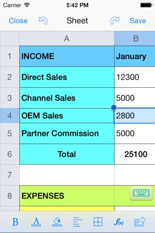 Note: If you are looking for spreadsheet apps that can handle .xls format and complex formulas, this app is not for you.