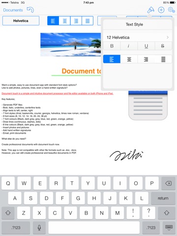 Document touch is a simple and intuitive document processor and file editor available on both iPhone and iPad.