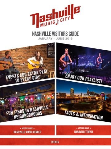 The Nashville Visitors Guide is the essential planning tool for travelers headed to Music City. Discover a wealth of fun things to do, such as world-class attractions, delicious dining spots, hip nightclubs and a variety of great shops. The visitors guide offers feature stories, event listings, lodging information and everything you need to plan that perfect trip to Nashville. In addition, there are links to sports and recreation, tours and transportation and much more at www.visitmusiccity.com.