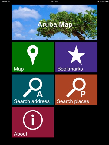Aruba offline map mobile application. All data is stored in the phone memory for offline usage.