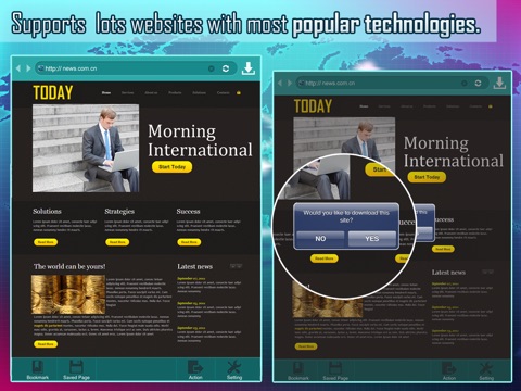 With beautiful graphics and super easy to use interface... Forget about paying for those high data costs; just download the pages you want and save them for future browsing!