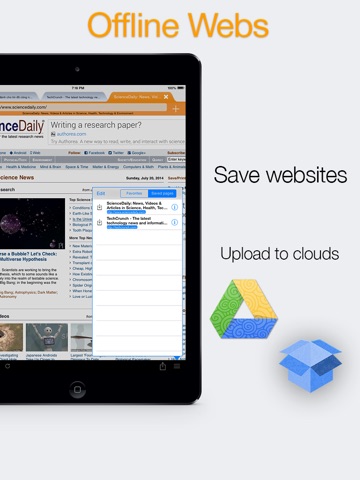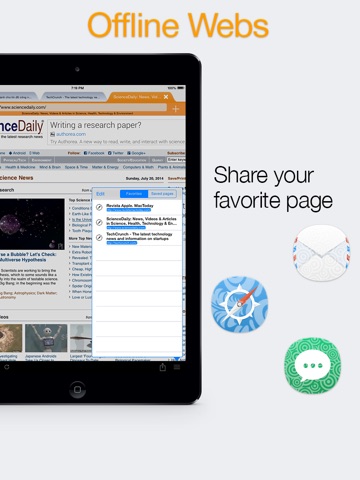 To save a page for offline reading or bookmark, simply touch the button while surfing the web in a built-in browser. You can share web links to email or open links in Safari, Chrome.