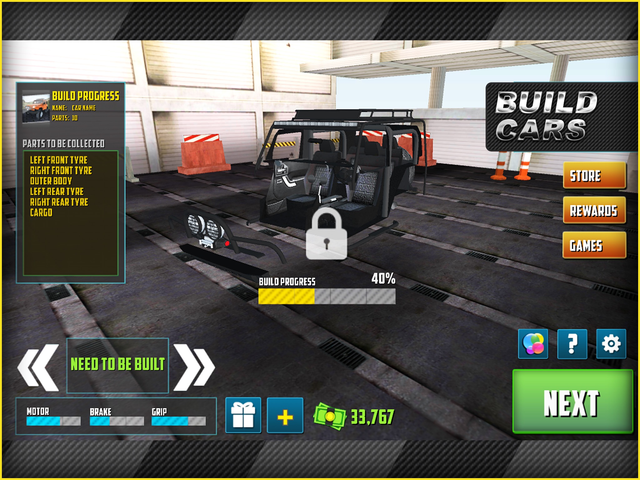 - New multi level system, collect car parts and build your vehicle