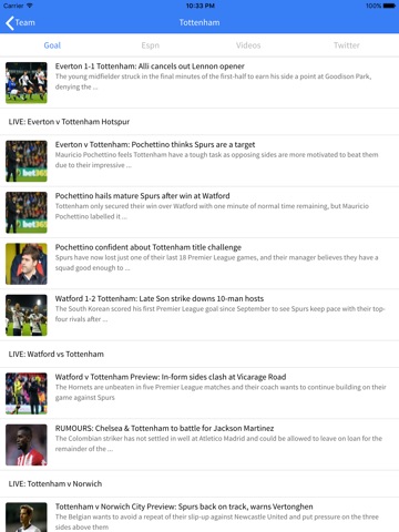 - Integrated Twitter feeds of all teams helps you get the team lineup quickly before each game and stay updated on the official announcements/pictures/news from your club.