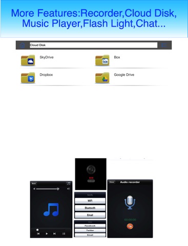 - File Share: Wi-Fi, E-Mail, iTunes, U-Disk