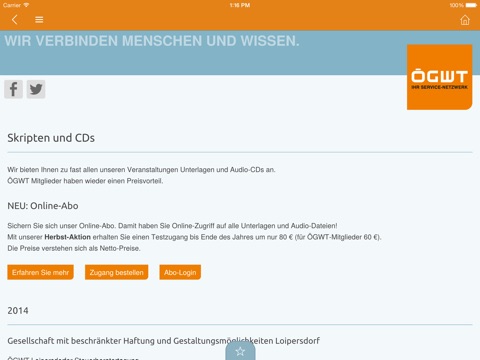 Mit der ÖGSW-App für iPhone, iPod touch und iPad steht Ihnen unser umfangreiches ÖGSW-Informations- und Wissensangebot auch mobil zur Verfügung, z. B.