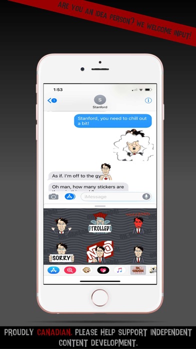 • Download our hilarious Canadian sticker pack from the Appstore.