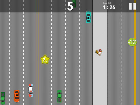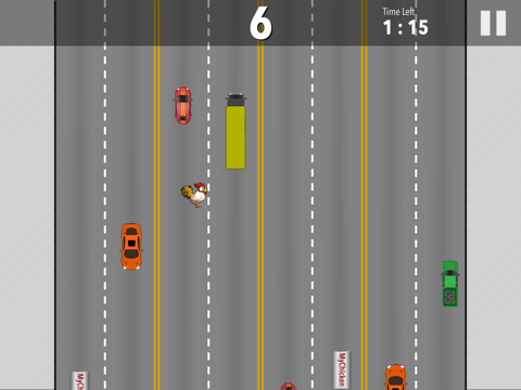The city streets are dangerous for a helpless chicken, help your chicken to cross the busy streets without being run over.