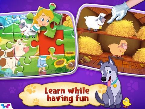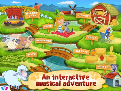Create beautiful music with this interactive game! Tap the different animals — dogs, sheep, cows, and chickens — to hear them sing!