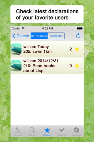 You can view popular declarations for both in-progress goals and completed goals. You can send comments of support to users whose declarations you like.