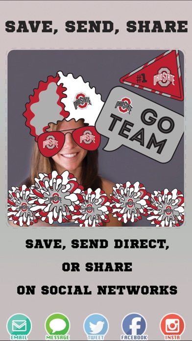 Ohio State Buckeyes PLUS Selfie Stickers app lets you add over 50 awesome, officially licensed Ohio State Buckeyes stickers to your selfies and other images. You can add Ohio State Buckeyes branded footballs, basketballs, banners, glasses, hats, shirts, foam fingers, hair, helmets and much more. Afterwards, share them with your friends through email, messaging, Instagram, Facebook and Twitter. Or save them to your photo gallery for future use. Become the Ohio State Buckeyes fan you were meant to be!!!
