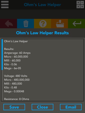 The best and most popular ohms law calculator on the app store! Ohms Law Helper is very simple to use and very accurate, just input two values to receive the remaining values. Easy to use while building coils or in the field for quick calculations.
