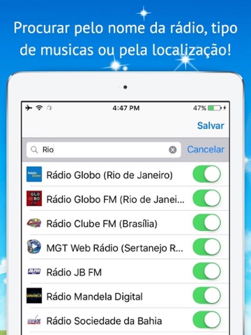 -Over fifty of the most important radio stations in Brasil in one application.