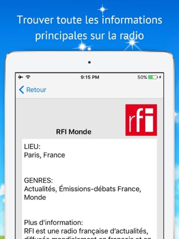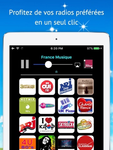 -Over fifty of the most important radio stations in France in one application.