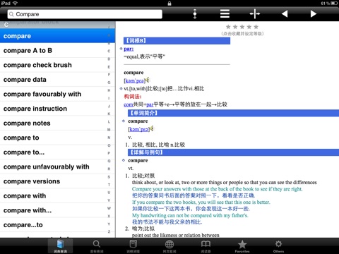 4.依据英语的词根和词缀构成法则对超过了8000个单词进行了重新编排, 我们花费了大量的时间并且参考了相关的资料将所有的词缀词根, 和相关的单词都内建链接, 可以根据单词直接找到相关的词根词缀, , 也可以根据词缀词根直接查找到相关的单词, 帮助学习者进行联想记忆, 这些单词大部分都是大学阶段大纲要求掌握的常用词汇, 有些比较偏的词汇也是TOEFL, GRE等考过的单词。这些单词对词根词缀有较大的“代表性”。 软件对这部分单词根据前缀词根后缀的方式进行了拆解,并通过联想记忆的方式进行了解释。