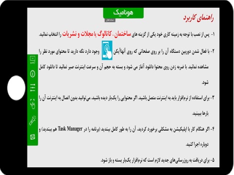 -پس از نصب نرم افزار با انتخاب گزینه آرشیو موضوع مورد نظر خود را انتخاب نمایید و دوربین دستگاه را بر روی صفحاتی که علامتگذاریشده اند قرارد دهید تا پس از شناسایی مطلب، نشان دست ظاهر شود؛ پس از کلیک به روی آن، عملیات دانلود آغاز میشود پس از اتمام دانلود، باردیگر دوربین را برروی صفحه مجله قرار دهید تا محتوای واقعیت افزوده را مشاهده نمایید.