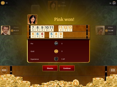 “Rummy OKEY” is a simplified version of the original Okey. Scores are not kept. This version is more like a casino game, like poker or blackjack. Each game is independent of the others and winner of a game takes the money on the table.