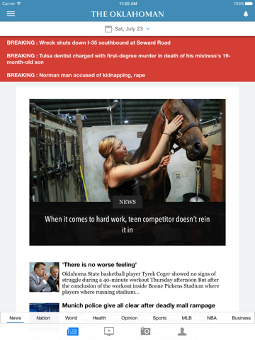 After the Oklahoman App is opened, individual stories under "Extras" (Health,nation,world) will not open and immediately the app will close. The app will then have to be reopened
