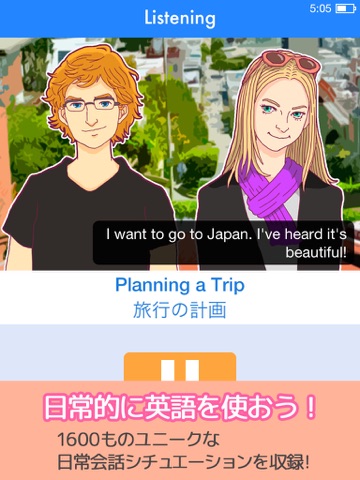 ○ 会話カテゴリーが旅行、ビジネス、日常など様々!気分に合わせて学習しよう
