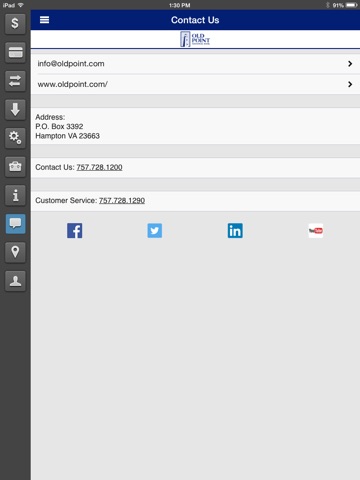 Mobile Banking from your iPhone/iPad is a free service offered to all Old Point Online Banking customers.
