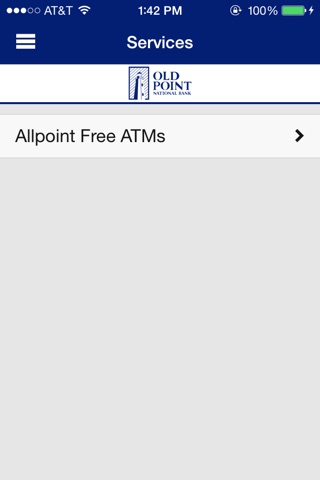 LOCATE Old Point – Locate the nearest Old Point branch or ATM using built-in Location Services or search by zip code and street address. You can also navigate to the Allpoint FREE ATMs link, under the Services Menu.