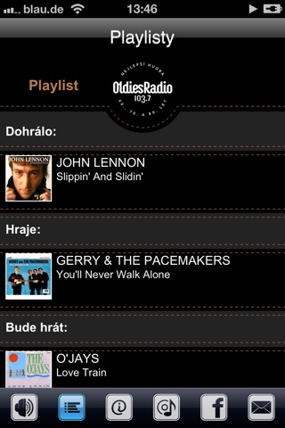 Tato aplikace vám navíc umožní nahlédnout během poslechu do playlistů našich speciálních hudebních pořadů, které pro vás vysíláme každý večer. Podíváte se na booklety největších hitů i hudebních rarit a budete mít vždy všechny potřebné informace o právě hrající skladbě nebo skladbách nedávno odehraných. Najdete zde také novinky z hudebního světa i z Oldies radia.