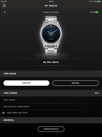 The Olio Assist app also pairs with Olio watches to provide a faster and more convenient way to view and act on notifications as well as use Control Hub. Olio’s Control Hub conveniently connects you to the services and connected devices you love, so you’re free to harness the full power of your entire digital life. By only presenting controls that are relevant to you at that moment, you avoid the pain of searching for apps.