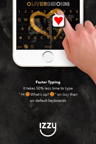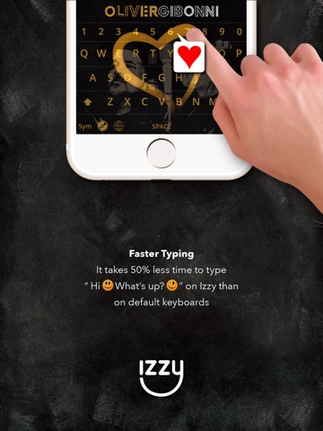 It takes 50 % less time to type ”Hi :) What’s up?” on Izzy than on default iOS keyboard
