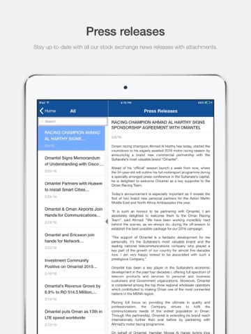 The Omantel Investor Relations app will keep you up-to-date with the latest share price data, stock exchange and press releases, IR calendar events and much more.