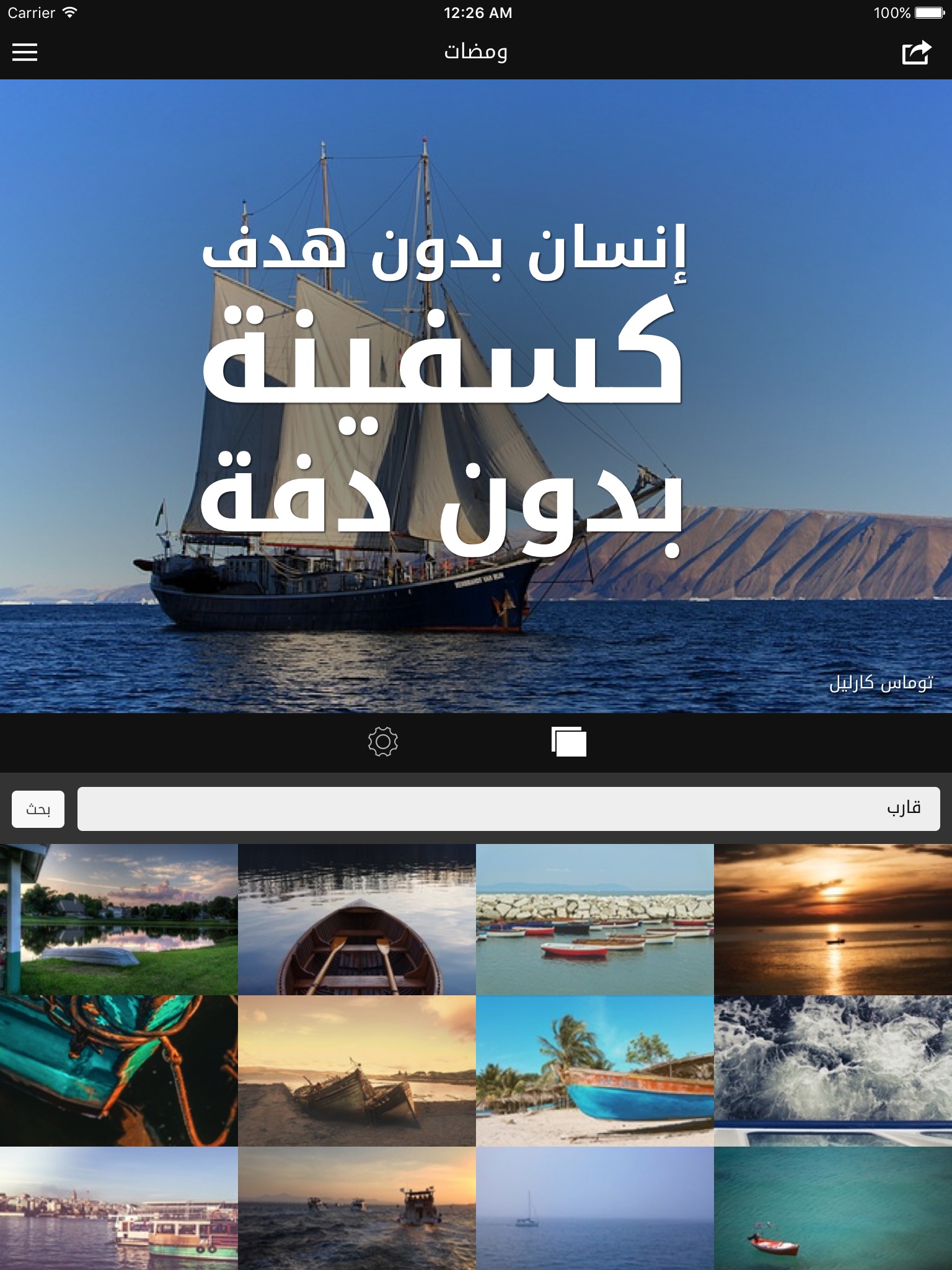 Wamdat app provides a quick and easy way to design beautiful and short quotes. Just type your quote and then select the appropriate image to get a lovely quote to share with your friends on social networks.